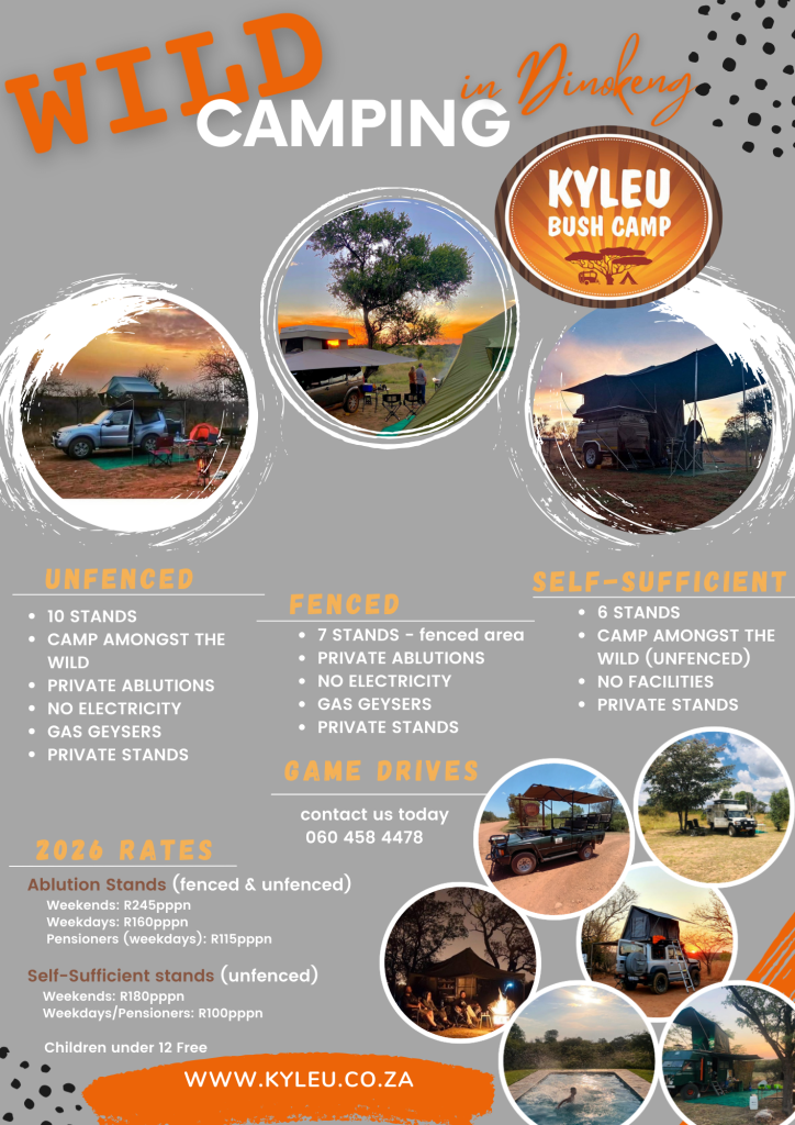 Bush Camp Rates 2026 – Ablution sites (fenced and unfenced)